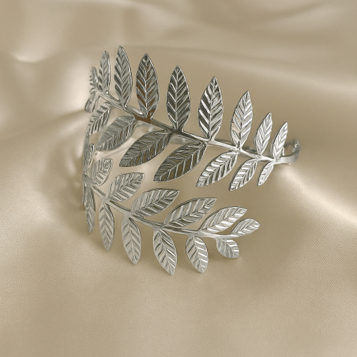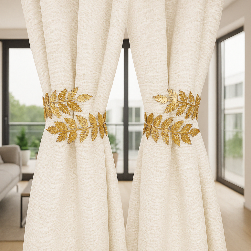 Amarradera decorativa resistente en dorado y plateado con ramas al principio de cada línea