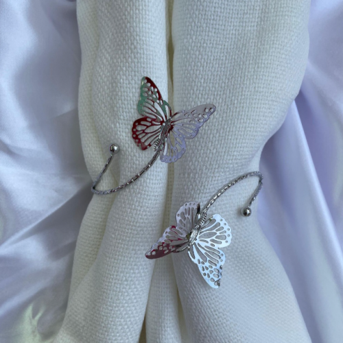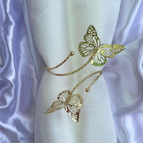 Amarradera decorativa resistente en color dorado y plateado con diseño de dos hermosas mariposas en cada extremo