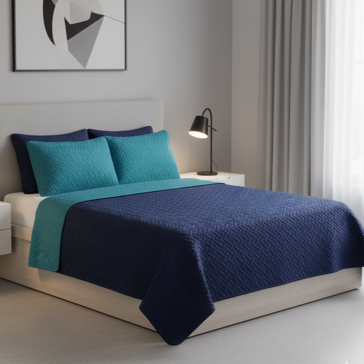 •Colcha doble faz unicolor