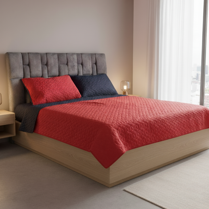 •Colcha termosellada con cremallera en sus fundas de almohada
