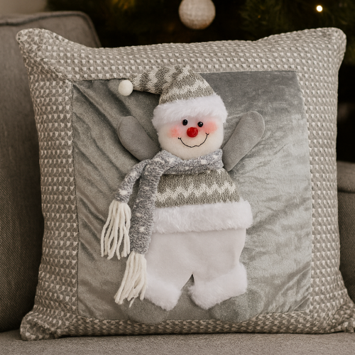 Funda Cojin Navideño Relieve GRIS MUÑECO NIEVE