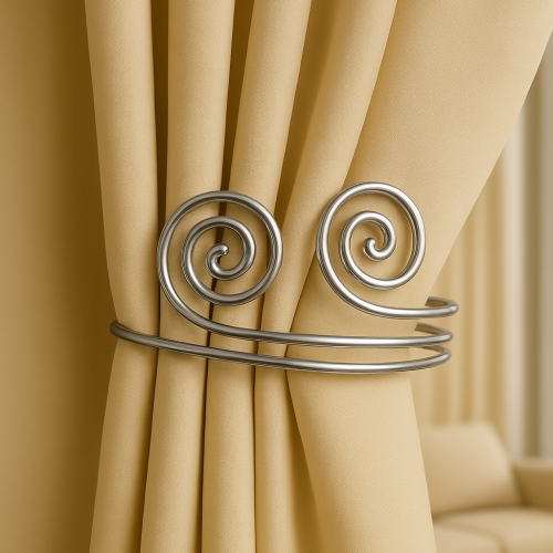 Amarradera decorativa resistente en color dorado y plateado con diseño de espirales