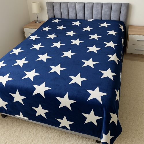- Cobija piel de cisne diseño de estrellas con revés ovejero