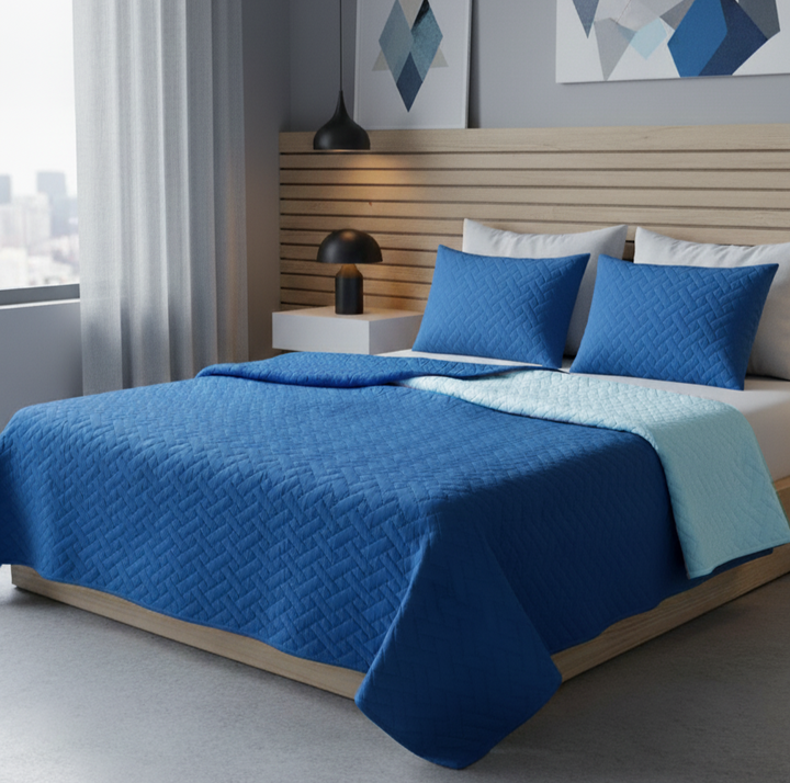 •Colcha doble faz unicolor
