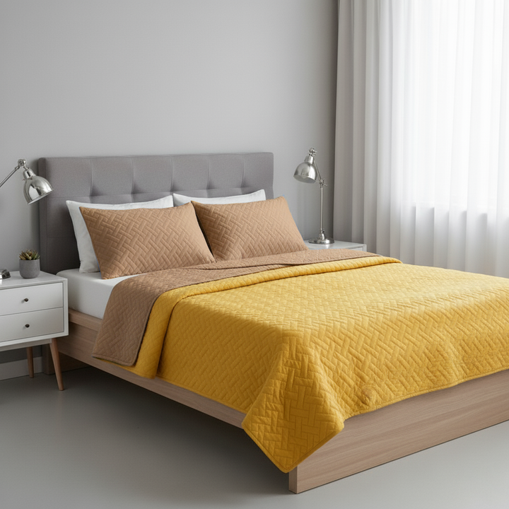 •Colcha termosellada con cremallera en sus fundas de almohada