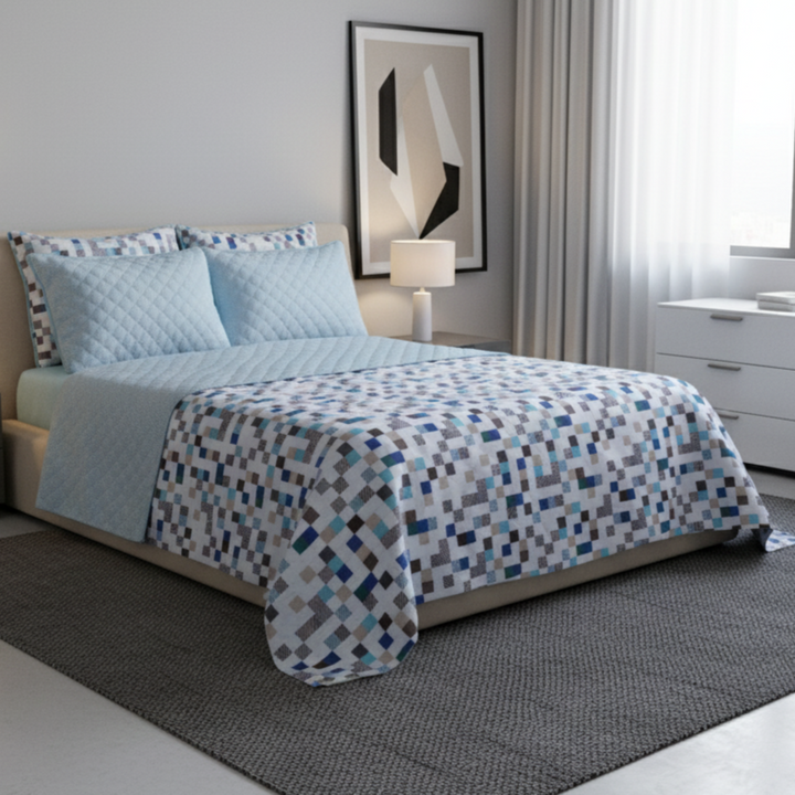 •Colcha termosellado con cremallera en sus fundas de almohada