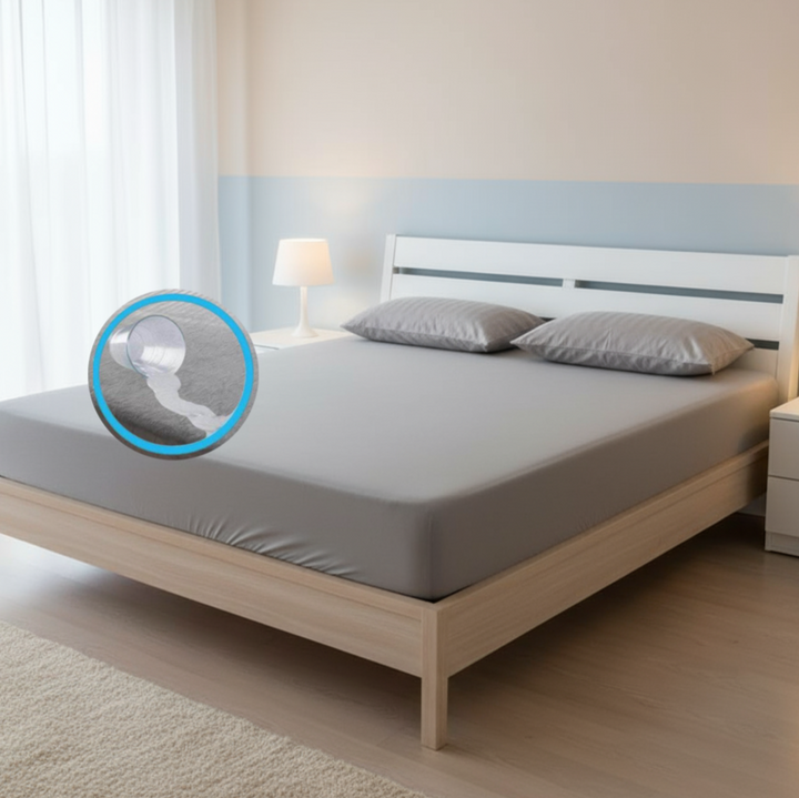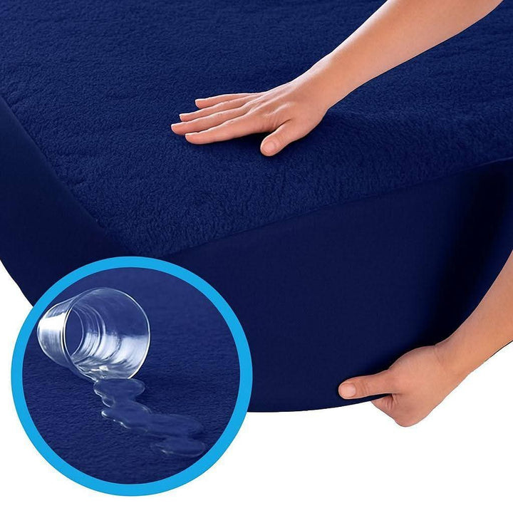 protector en tela toalla absorbente con revés en material sintético que evita el paso de líquidos y con fuelle de 30cm en genero