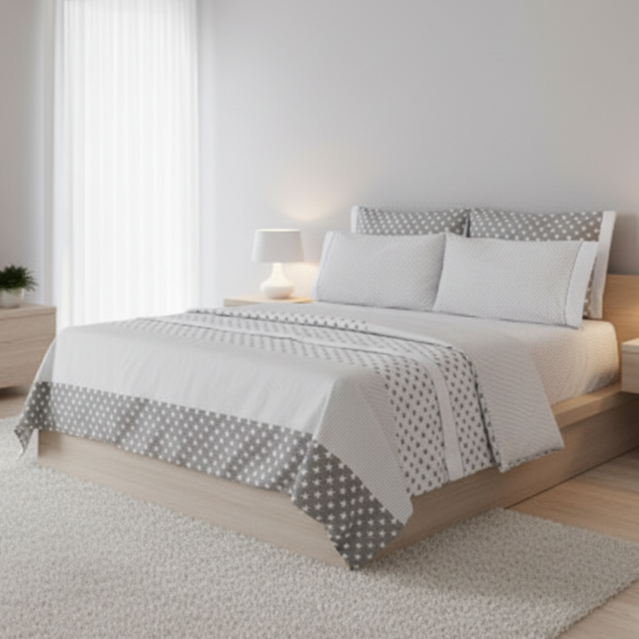 •Juego de sabanas estampadas en dacron de 180 hilos suave al tacto, fresca y liviana, resistente al desgaste, durable y con buena caída, ideal para climas variados