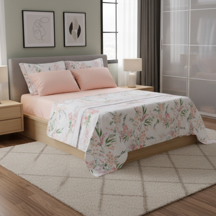•Juego de sabanas estampadas en dacron de 180 hilos suave al tacto, fresca y liviana, resistente al desgaste, durable y con buena caída, ideal para climas variados