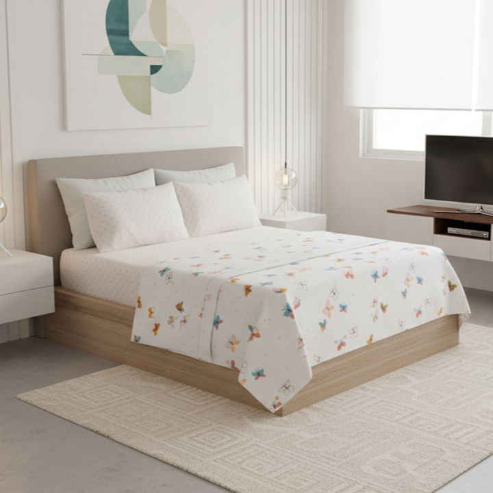•Juego de sabanas estampadas en dacron de 180 hilos suave al tacto, fresca y liviana, resistente al desgaste, durable y con buena caída, ideal para climas variados